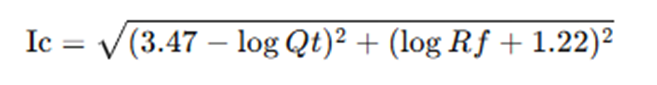 This formula allows continuous soil classification with depth and accommodates varying overburden pressures.